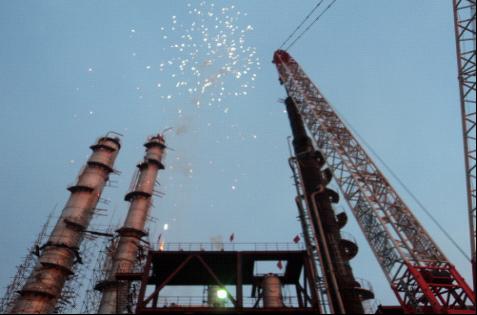 第五直屬分公司承建的甲醇洗滌塔順利吊裝就位