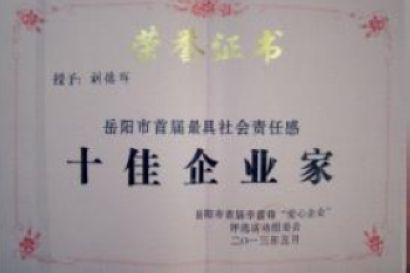 公司榮獲岳陽市首屆學(xué)雷鋒“愛心100”企業(yè)榮譽(yù)稱號(hào)