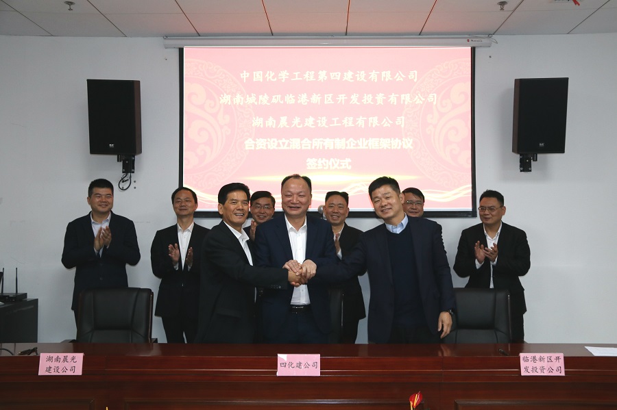 4月18日,公司與湖南城陵磯臨港新區(qū)開發(fā)投資有限公司、湖南晨光建設(shè)工程有限公司在岳陽簽署合資設(shè)立混合所有制企業(yè)框架協(xié)議。