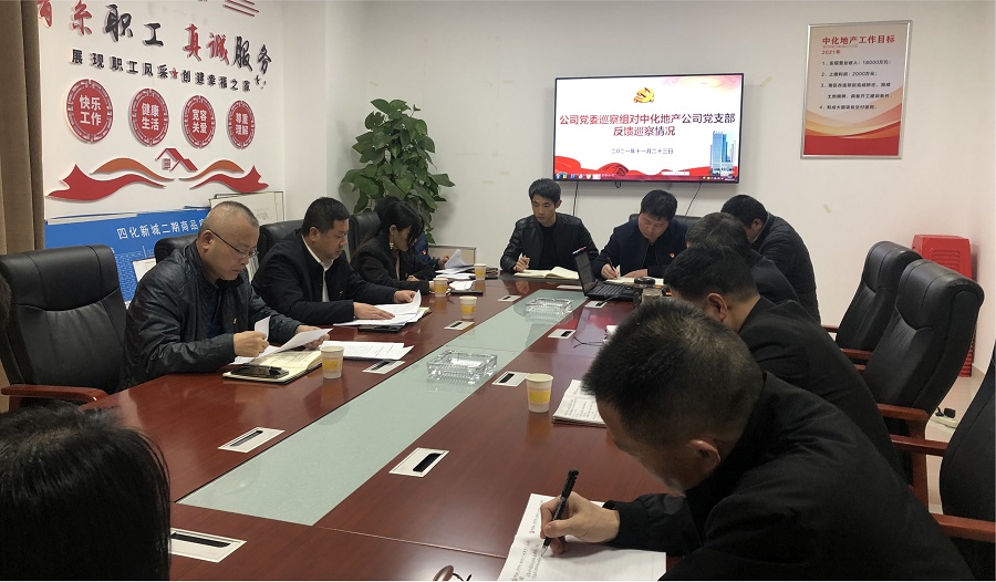 11月23日,公司黨委巡察組對中化地產(chǎn)黨支部反饋巡察情況。公司黨委副書記、紀委書記張勇代表公司黨委巡察工作領(lǐng)導小組對中化地產(chǎn)的巡察整改工作提出要求。巡察組副組長胡莽林代表巡察組反饋了巡察情況。中化地產(chǎn)黨支部書記、經(jīng)理王國蘋作表態(tài)發(fā)言。